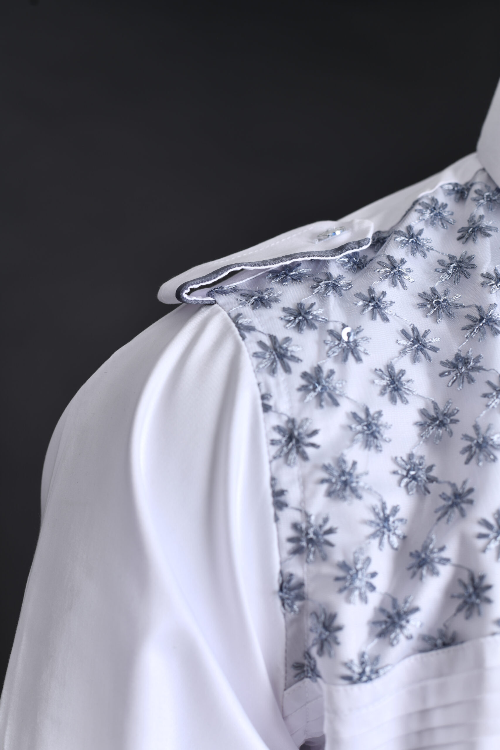 • Detailing: It includes smart accents like shoulder epaulettes and front chest pockets with contrasting light-colored piping or embroidery.
